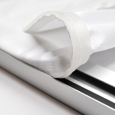 Das 27mm tiefe Aluminiumprofil garantiert eine hohe Stabilität des Rahmens. Für den Zusammenbau des Rahmens wird nur ein Inbusschlüssel benötigt und ist in kurzer Zeit erledigt. Der textile Druck ist ringsum mit einem Silikonkeder versehen. Dieser wird einfach in die Nut des Rahmens gedrückt, fertig. Zu unseren Standardgrößen bieten wir selbstverständlich auch individuelle Größen an.